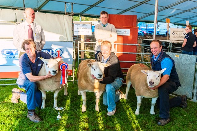 At the show kindly sponsored by Tarff Valley Feeds and held prior to the sale on Thursday night. The difficult task of finding a winner was ably undertaken by Mr James and Peter Fleming Lochside Farm, Yetholm , Kelso.